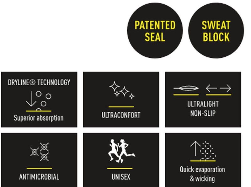 Tecnología Sweatblock canaliza el sudor hacia la nuca, lejos de cara y ojos.