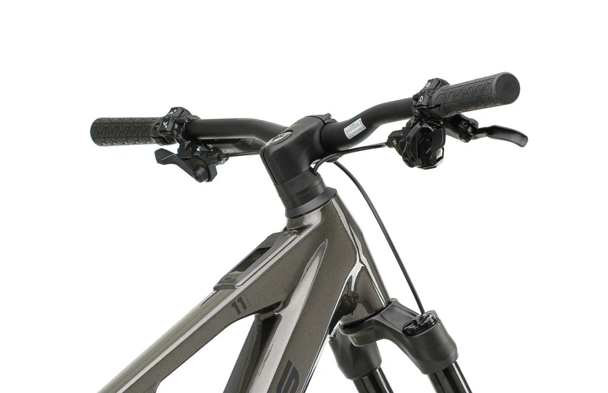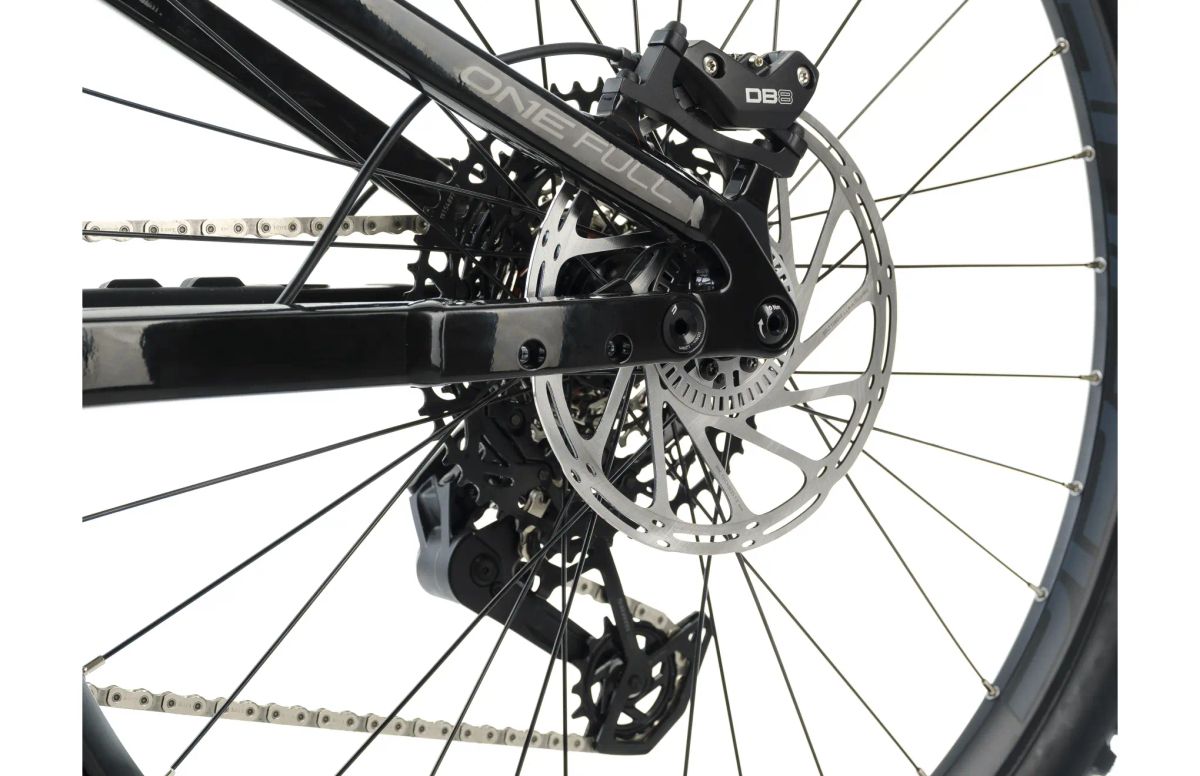 La potencia de frenadola proporcionan los potentes frenos hidráulicos SRAM DB8 Stealth de cuatro pistones con discos de 200 mm para una máxima seguridad.
