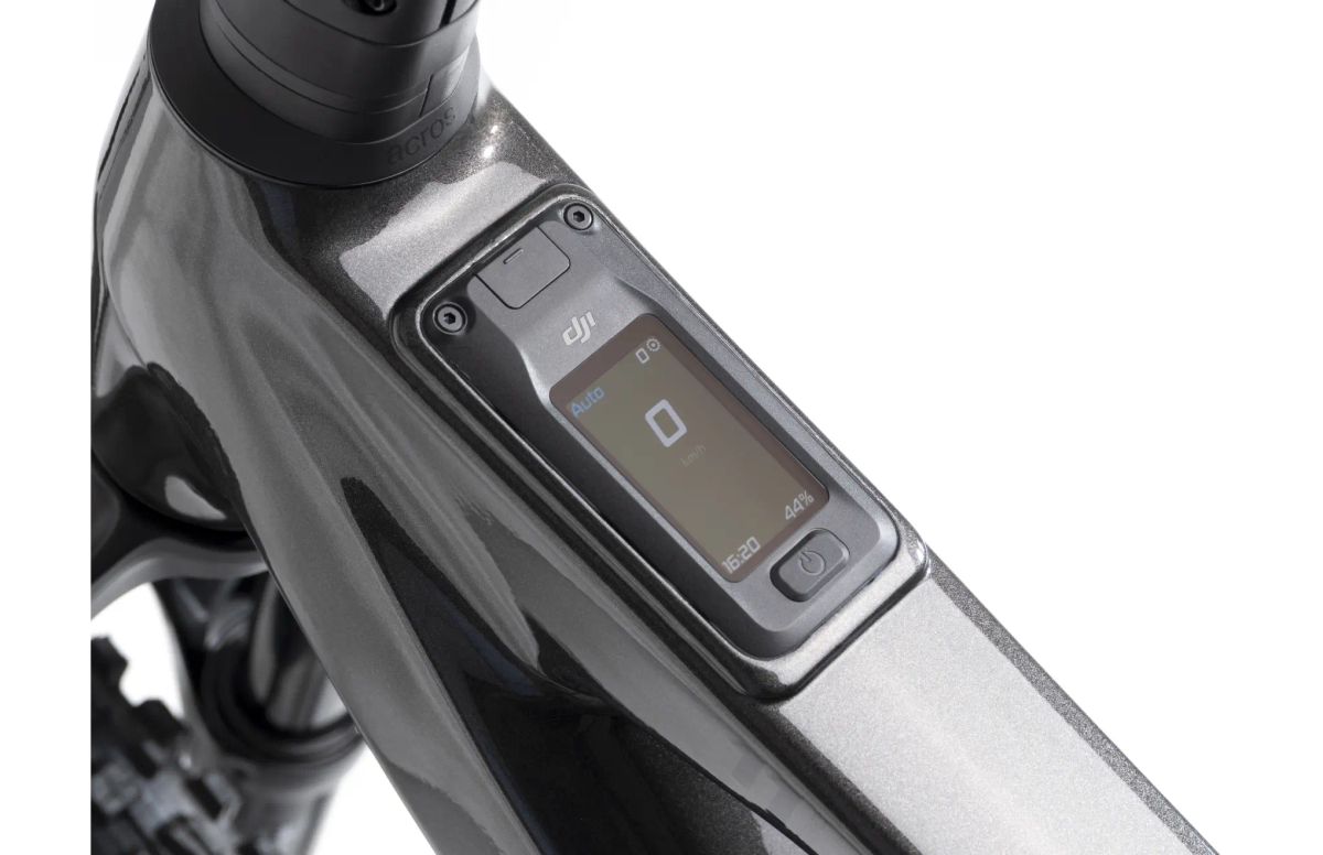 La pantalla, integrada en el cuadro de la e-bike, tiene un panel táctil OLED de 2" con una resolución de 326 ppi y un brillo de hasta 800 nits que se ajusta automáticamente a la luz ambiental. Cuenta con sensores GPS, giroscopio, barómetro y soporte para Bluetooth 5.1, ANT+ y LTE-Cat.1. Permite seguimiento de ruta, velocidad, cadencia y potencia con memoria interna de 8 GB y sincronización vía app. El control se realiza mediante 2 mandos inalámbricos en el manillar: el izquierdo para ajustar el nivel de asistencia y el derecho para desplazarse por la pantalla. El puerto USB-C admite carga rápida con hasta 65 W de potencia.